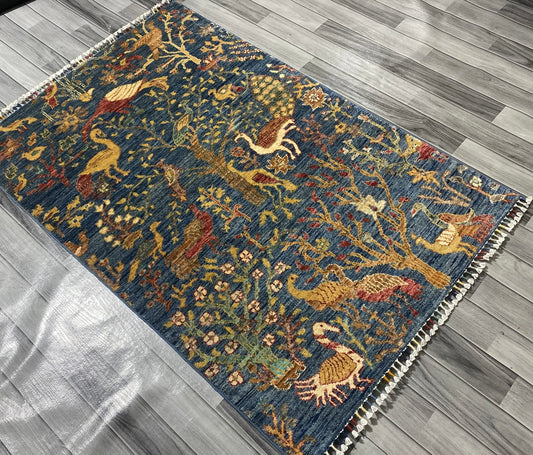 Handmade Chobi Pictorial Wool Rug 150 CM x 100 CM ( SS#68 )