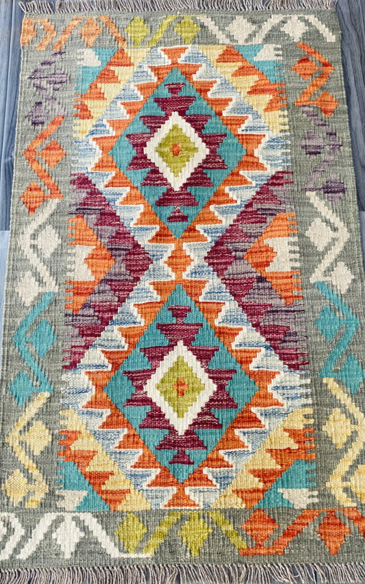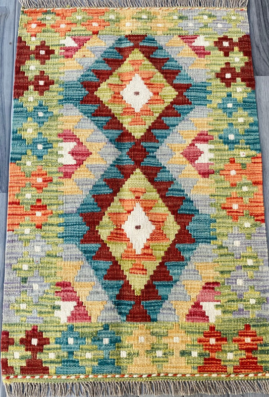 Handmade Afghan Chobi Kilim Rug 89 CM x 59 CM ( SS # 36 )