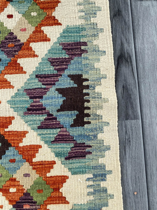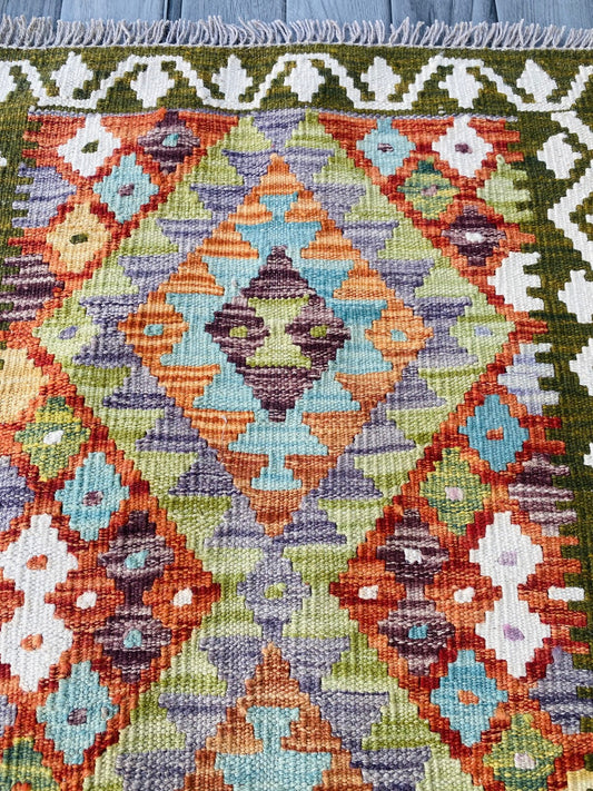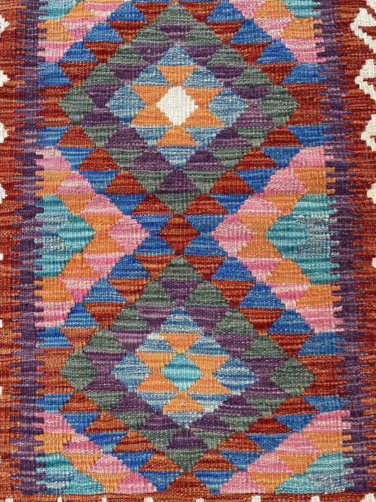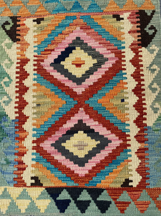 Handmade Afghan Chobi Kilim Rug 88x67 cm KAS#707