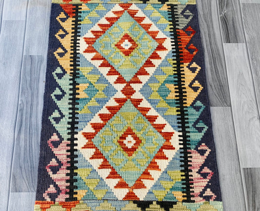 Handmade Afghan Chobi Kilim Rug 89x57 cm KAS#713
