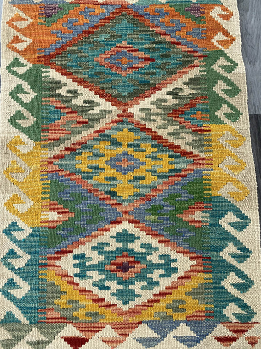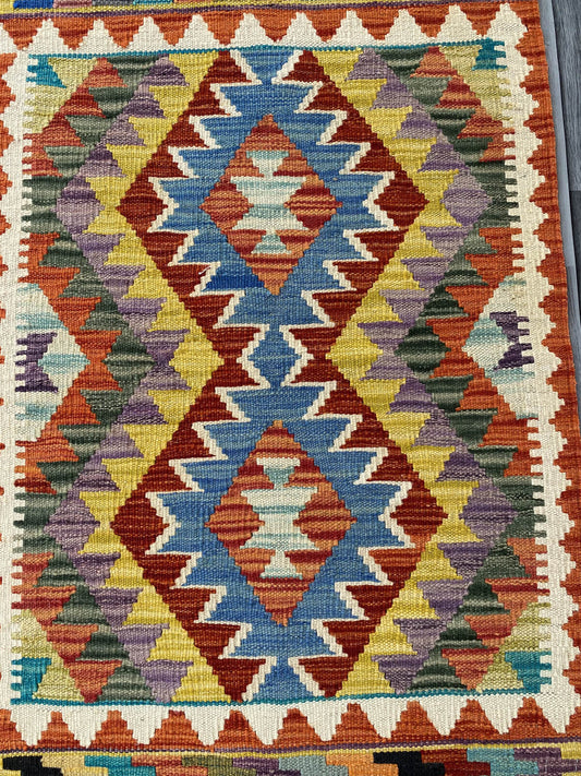 Handmade Afghan Chobi Kilim Rug 92x60 cm KAS#704