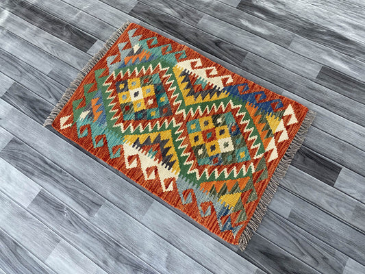 Handmade Afghan Chobi Kilim Rug 89 CM x 59 CM ( SS # 43 )