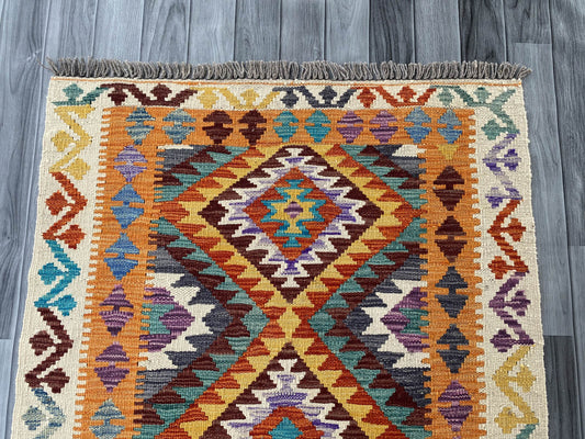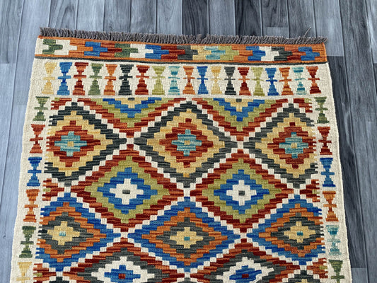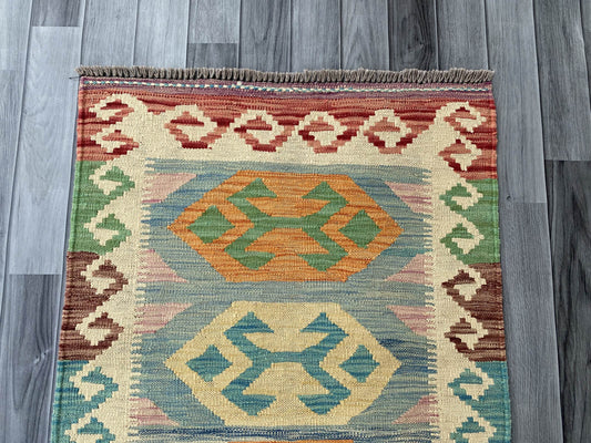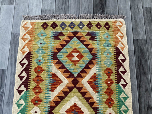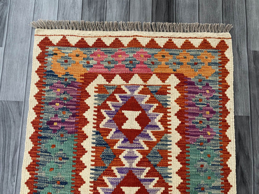Handmade Afghan Chobi Kilim Rug 88x59 cm KAS#721