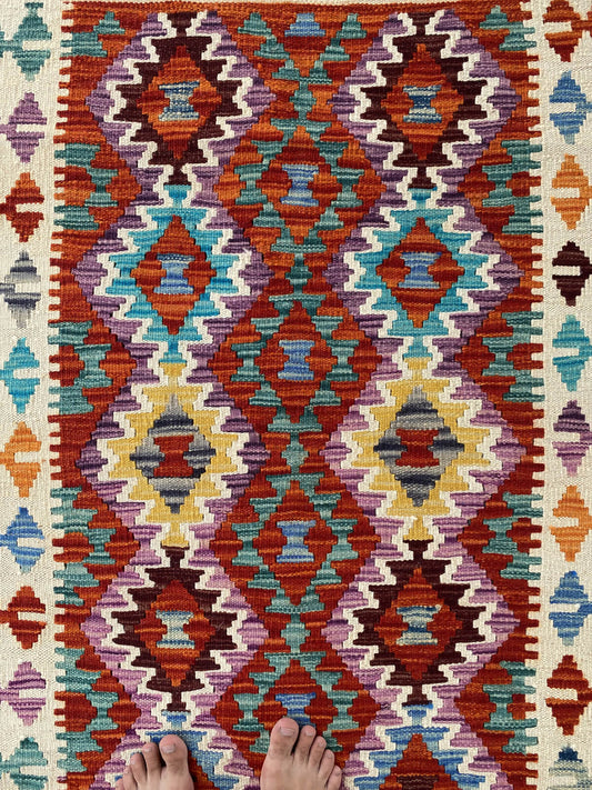 Handmade Afghan Chobi Kilim Rug 128x78 cm KAS#724