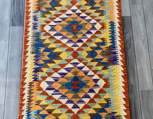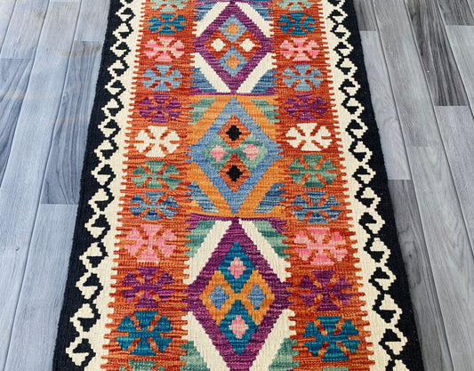 Handmade Afghan Chobi Kilim Hallway Runner Rug 193 CM x 70 CM ( SS # 94)