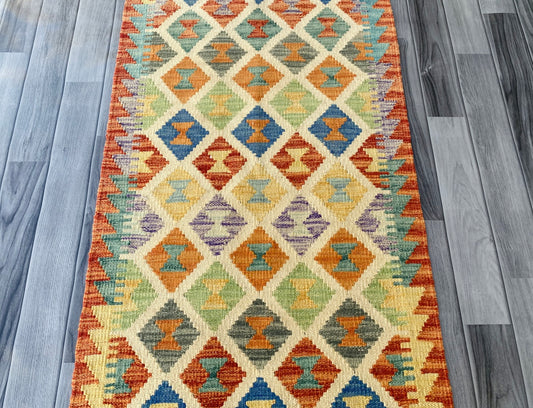Handmade Afghan Chobi Kilim Hallway Runner Rug 192 CM x 70 CM ( SS # 102)