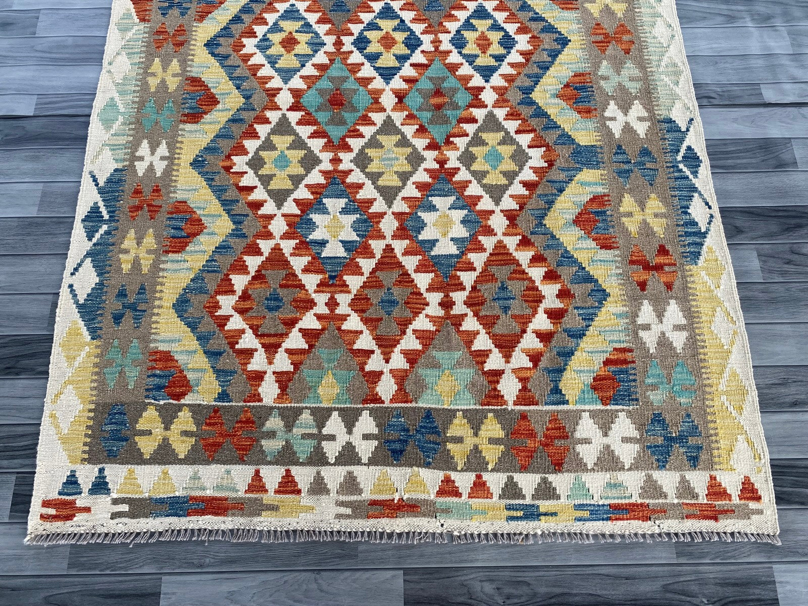 Elevate your home décor with this stunning Handmade Afghan Chobi Kilim Rug, sized at 202 CM x 153 CM. This multicolor rug showcases traditional craftsmanship with a modern touch, perfect for adding warmth and style to any room. The rectangle shape makes it ideal for larger spaces, ensuring both elegance and durability.