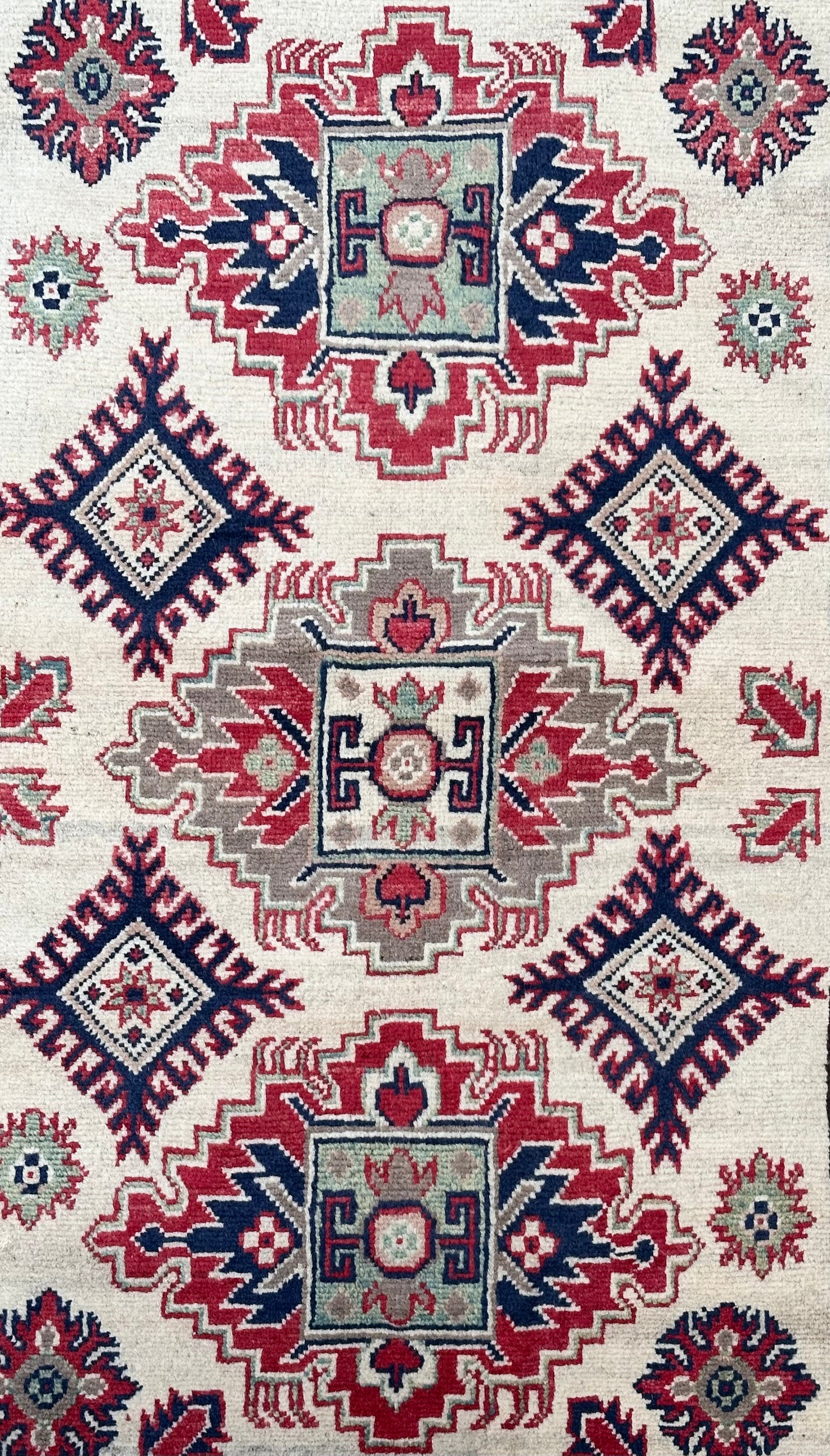 - Features distinctive Kazak patterns with rich, vegetable-dyed colours that maintain their vibrancy